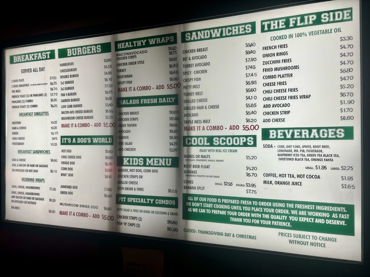 The menu at Money Pit offers a straightforward and satisfying selection of classic American diner favorites. It’s the kind of place where you can enjoy familiar comfort food any time of day, whether you’re stopping by for a quick breakfast or settling in for a casual lunch or dinner.