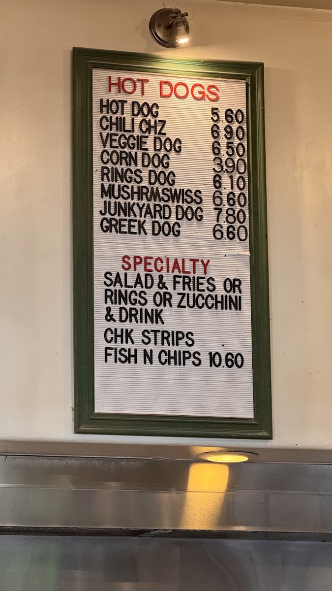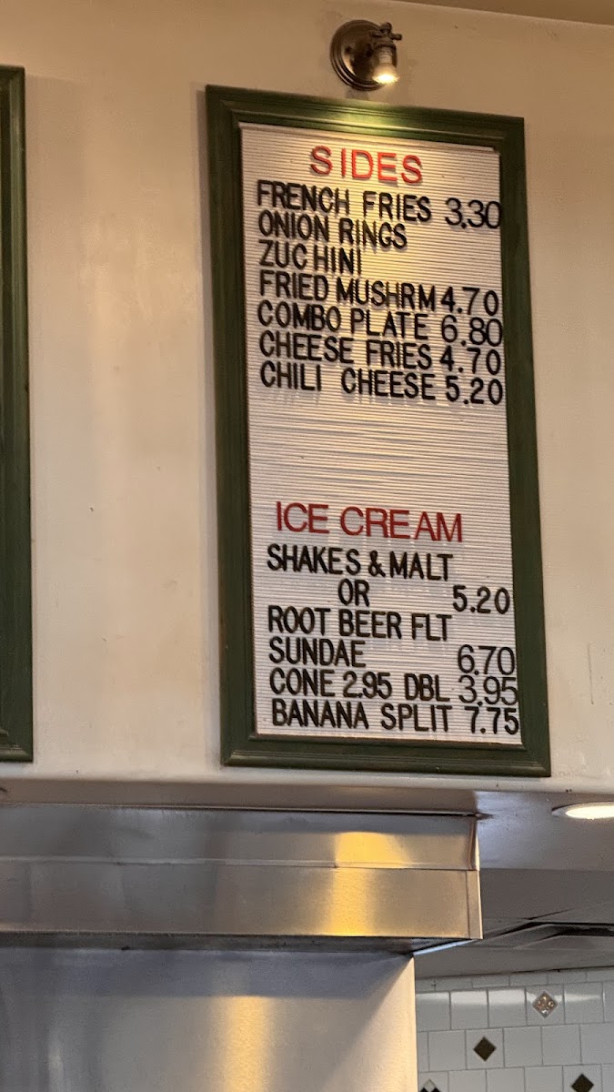 There’s also a varied offering of lighter options and sides, like Greek salad, grilled chicken salad, or veggie hot dogs, fitting well with the relaxed and unpretentious vibe of the spot. For sweeter moments, treats like root beer floats and banana splits add a nostalgic finish to any meal.
